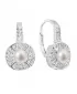 Visiace perlové náušnice 21054.1 sú vyrobené zo striebra o rýdzosti 925/1000 s povrchovou úpravou ródiom. Ústredným prvkom tohto šperku je pravá riečna perla tej najvyššej kvality AAA, ktorej šírka je 4 - 5,5 mm. Obvod náušnice je navyše zdobený mnohými priezračnými zirkónmi, vďaka ktorým sa šprk nádherne trbliece. Náušnice sa pohodlne zapínajú na klapku, ktorá ich chráni proti nechcenej strate. Do šperku nie je pridaný žiadny nikel, bez obáv ho tak môžu nosiť aj ľudia náchylní na alergické reakcie.