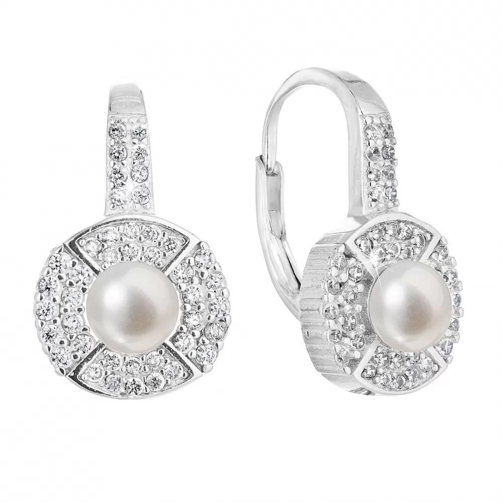 Strieborné náušnice visiace s bielou riečnou perlou 21054.1