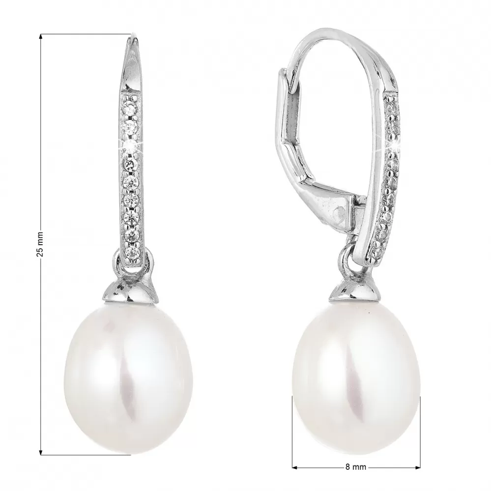 Strieborné náušnice visiace s bielou riečnou perlou 21060.1