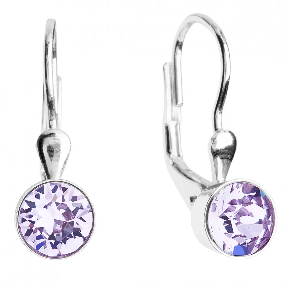 Strieborné náušnice visiace s kryštálmi fialové okrúhle 31112.3 violet
