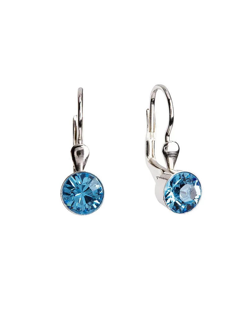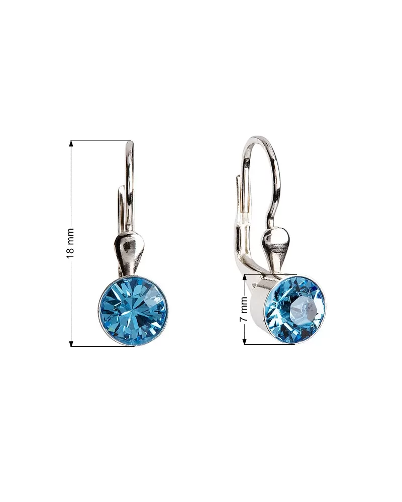 Náušnice sú vyrobené zo striebra o rýdzosti 925/1000 s povrchovou úpravou ródiom a sú zdobené okrúhlym kryštálom v modrej farbe. Náušnice zapnete na klapku, ktorá ich spoľahlivo ochráni proti nechcenej strate. Do náušnícnie je pridaný nikel, a tak ich bez obáv môžu nosiť aj alergici.