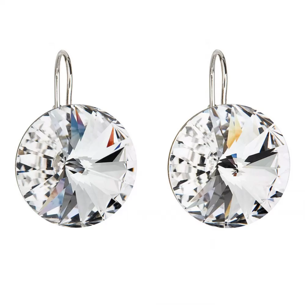 Náušnice sú vyrobené zo striebra o rýdzosti 925/1000 s povrchovou úpravou ródiom a sú zdobené okrúhlym Preciosa kryštálom s priemerom 18 mm bielej farby. Náušnice zapnete na klapku, ktorá ich spoľahlivo ochráni proti nechcenej strate. Do náušnícnie je pridaný nikel, a tak ich bez obáv môžu nosiť aj alergici.