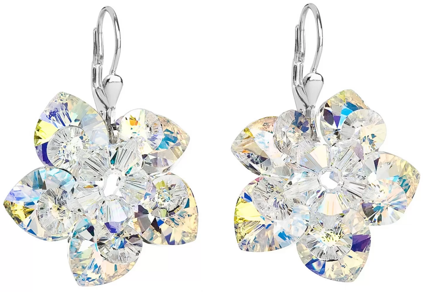 Strieborné náušnice visiace s kryštálmi Swarovski AB efekt kytička 31130.2