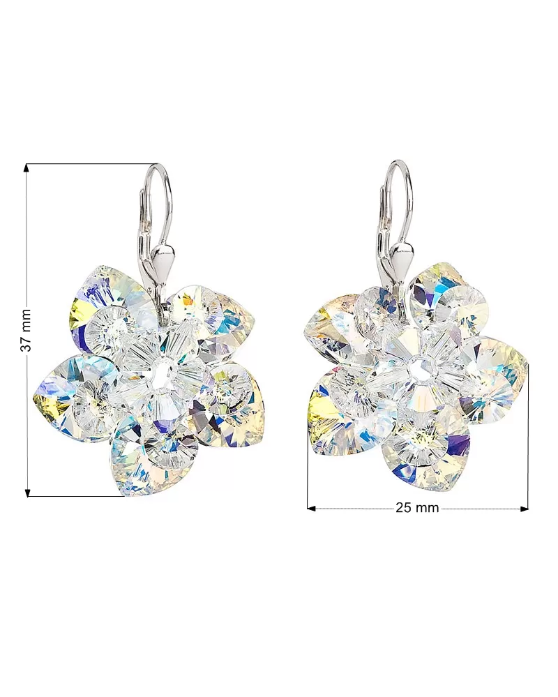 Parametre strieborných visiacich náušníc s kryštálmi Swarovski AB efekt kytička 31130.2