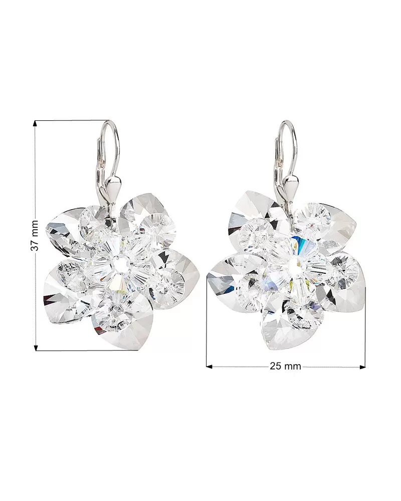 Parametre strieborných visiacich náušníc s kryštálmi Swarovski biela kvietka 31130.1