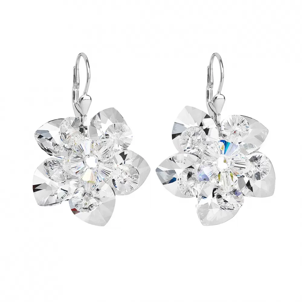 Strieborné náušnice visiace s kryštálmi Swarovski biela kvietka 31130.1
