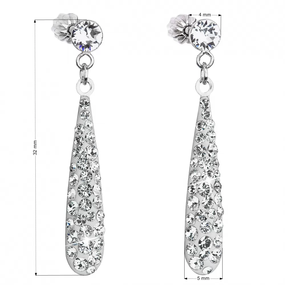 Parametre strieborných visiacich náušníc s kryštálmi Swarovski biela slza 31163.1