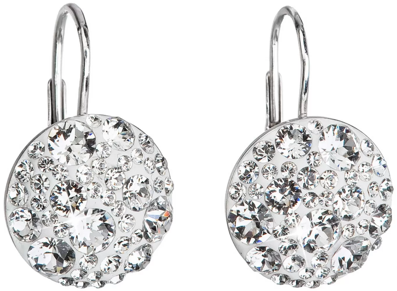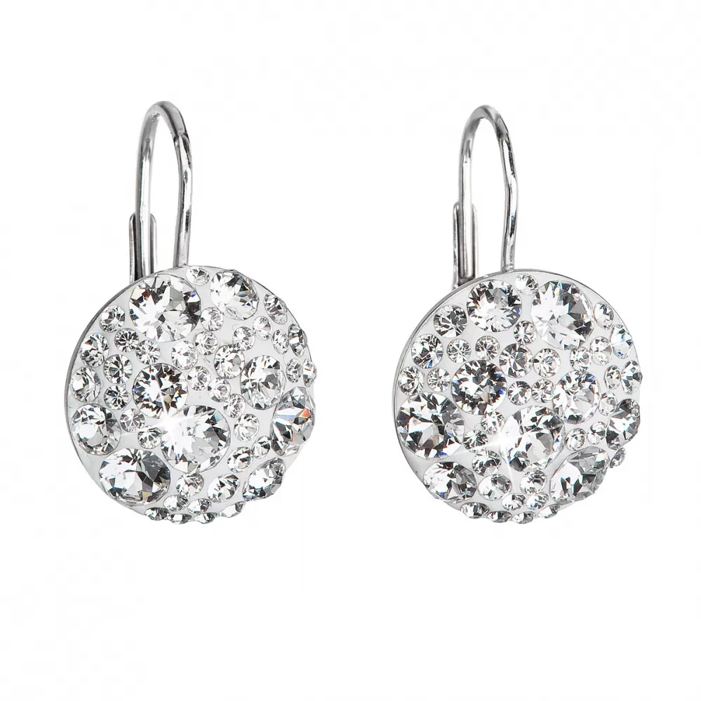 Strieborné náušnice visiace s kryštálmi Swarovski biele okrúhle 31176.1