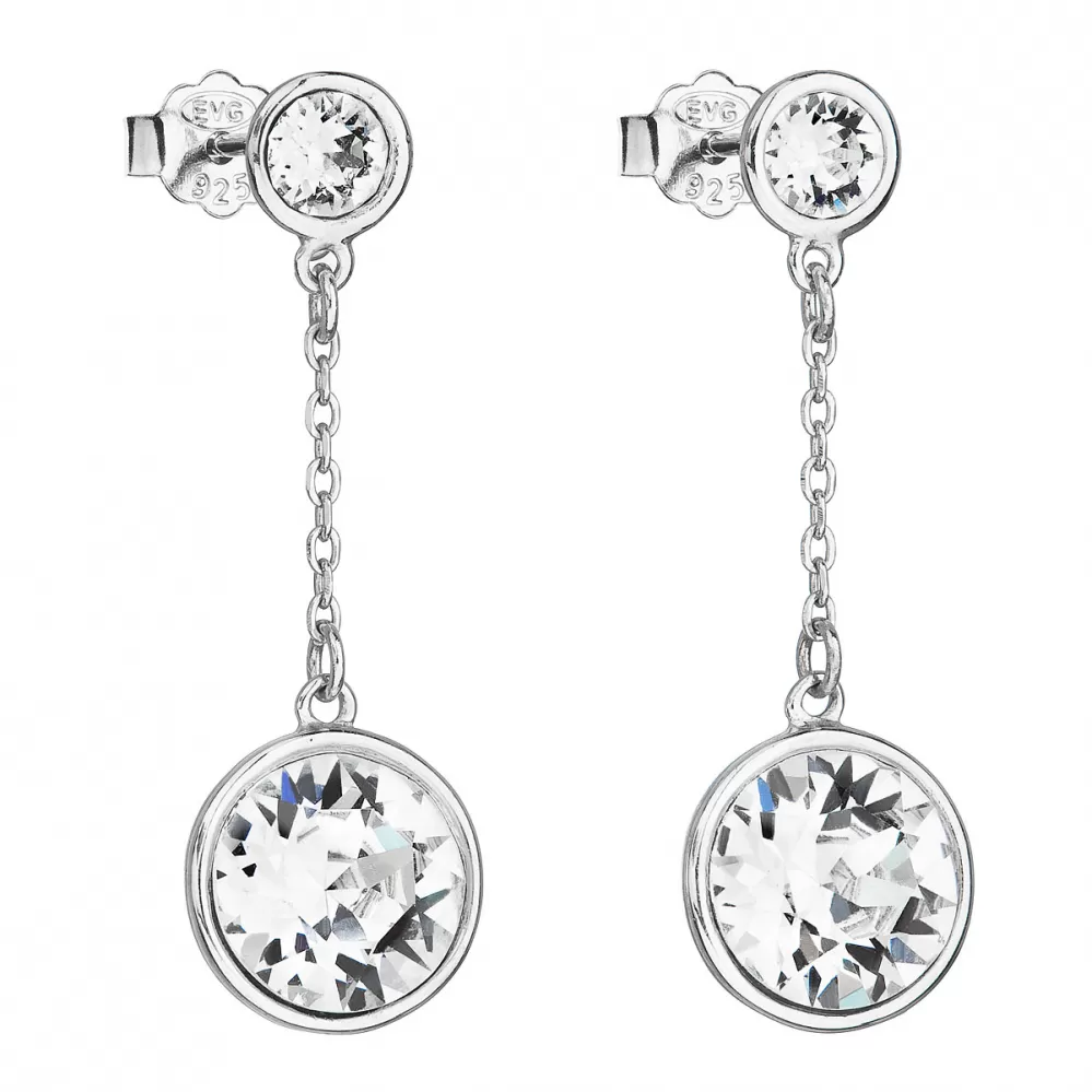 Strieborné náušnice visiace s kryštálmi Swarovski biele okrúhle 31269.1