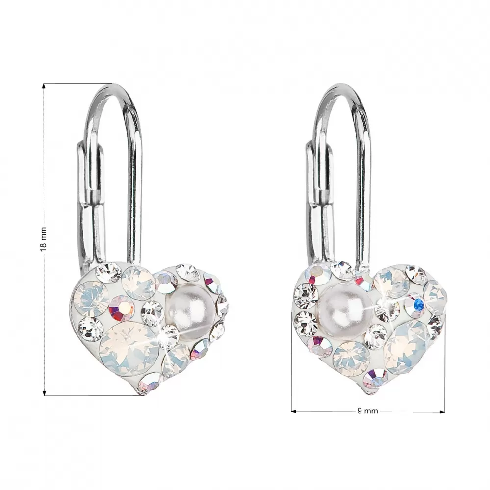 Parametre strieborných visiacich náušníc s kryštálmi Swarovski biele srdce 31125.9