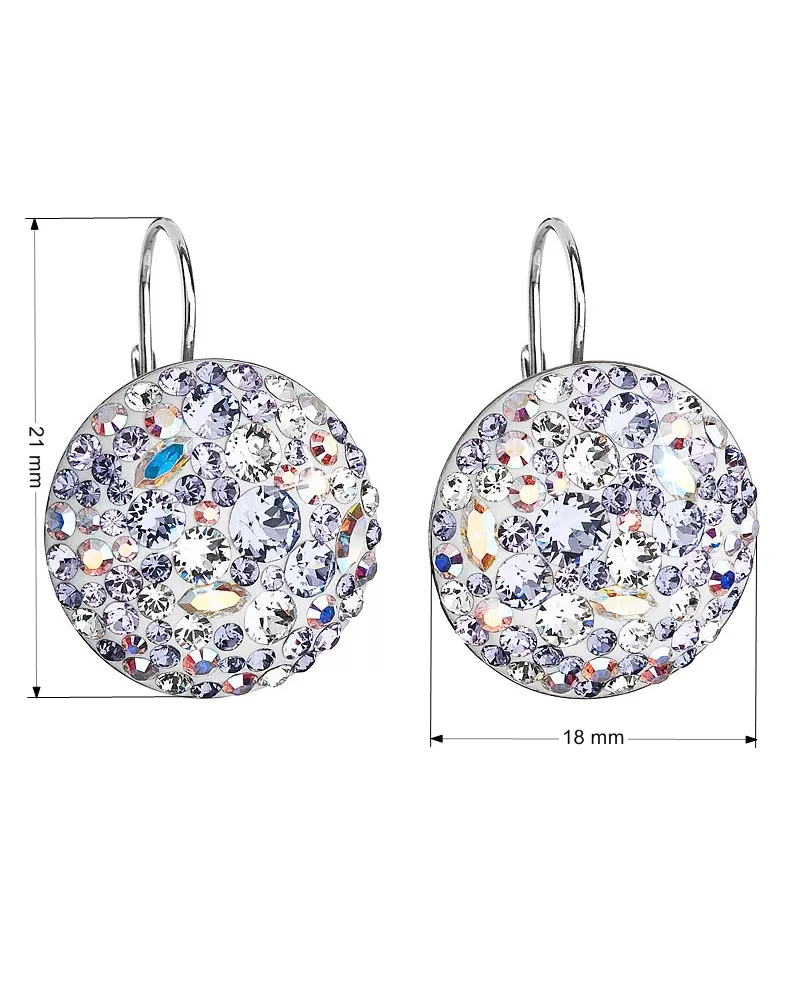 Parametre strieborných visiacich náušníc s kryštálmi Swarovski fialové okrúhle 31161.3 violet
