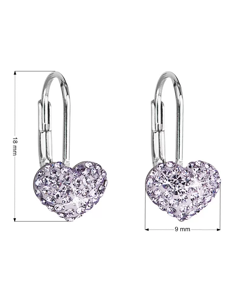 Parametre strieborných visiacich náušníc s kryštálmi Swarovski fialové srdce 31125.3