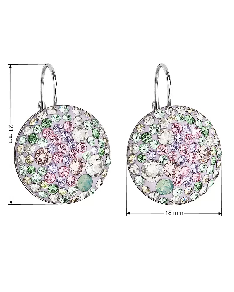 Parametre strieborných visiacich náušníc s kryštálmi Swarovski mix farieb okrúhle 31161.3 sakura