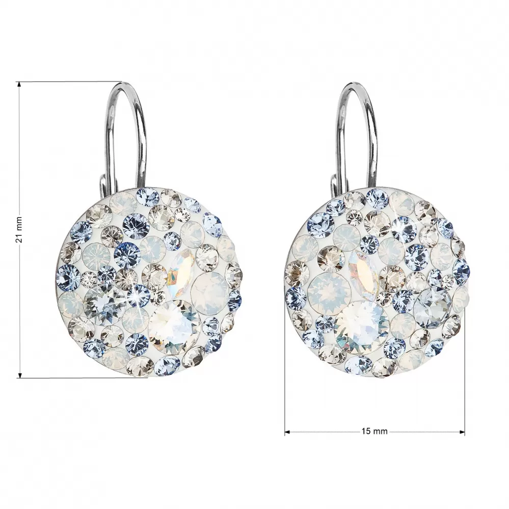 Parametre strieborných náušníc visiace s kryštálmi Swarovski modré okrúhle 31176.3 light sapphire
