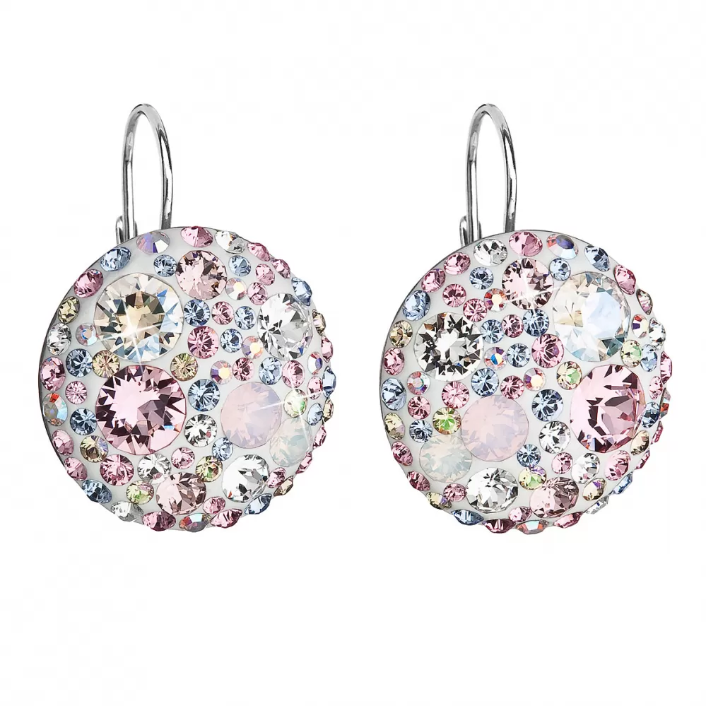 Strieborné náušnice visiace s kryštálmi Swarovski ružové okrúhle 31161.3