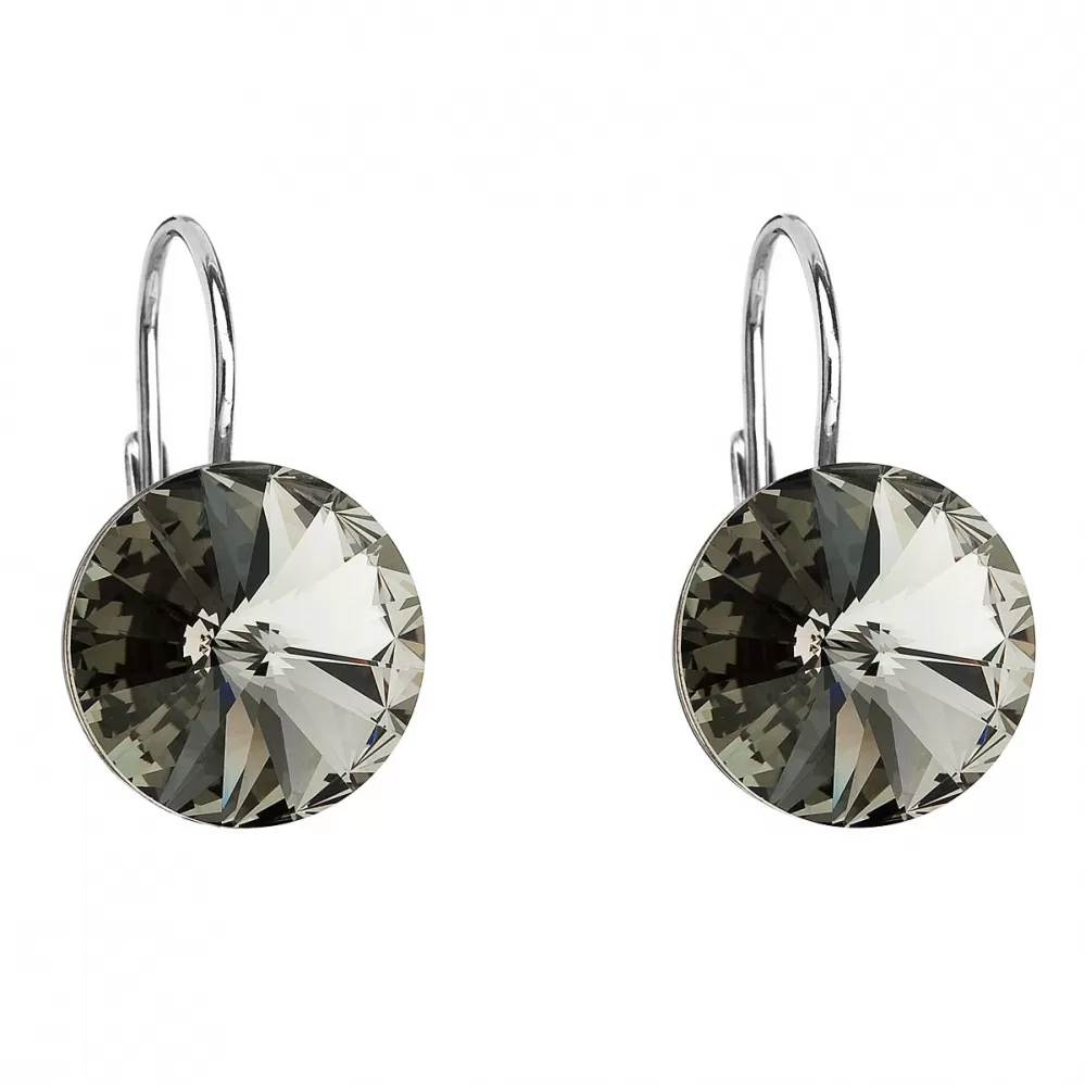 Parametre strieborných visiacich náušníc s kryštálmi Swarovski sivé okrúhle 31106.3