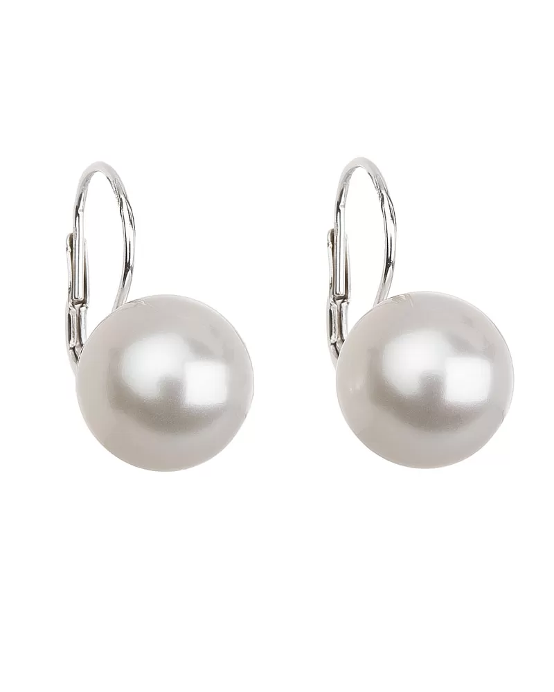 Strieborné náušnice visiace s perlou Preciosa biele okrúhle 31144.1