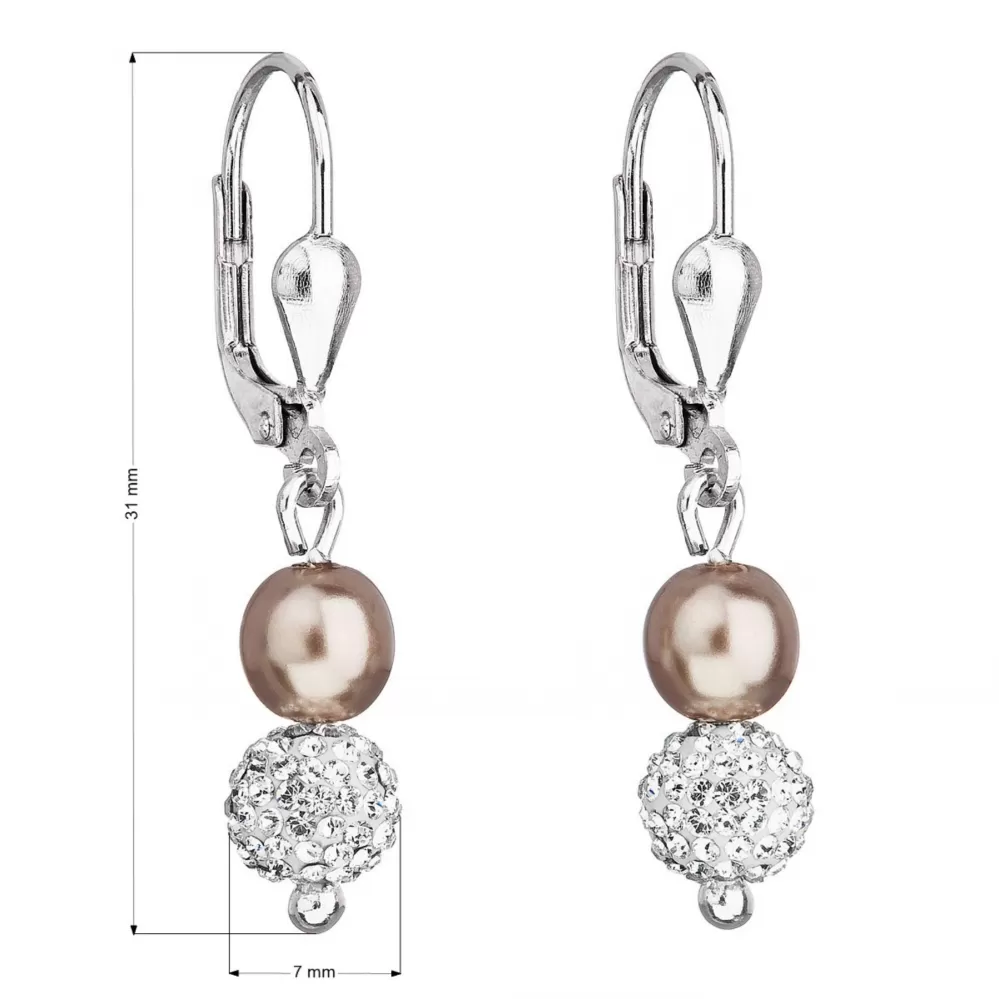 Strieborné náušnice visiace s Preciosa kryštály hnedé okrúhle 31244.3