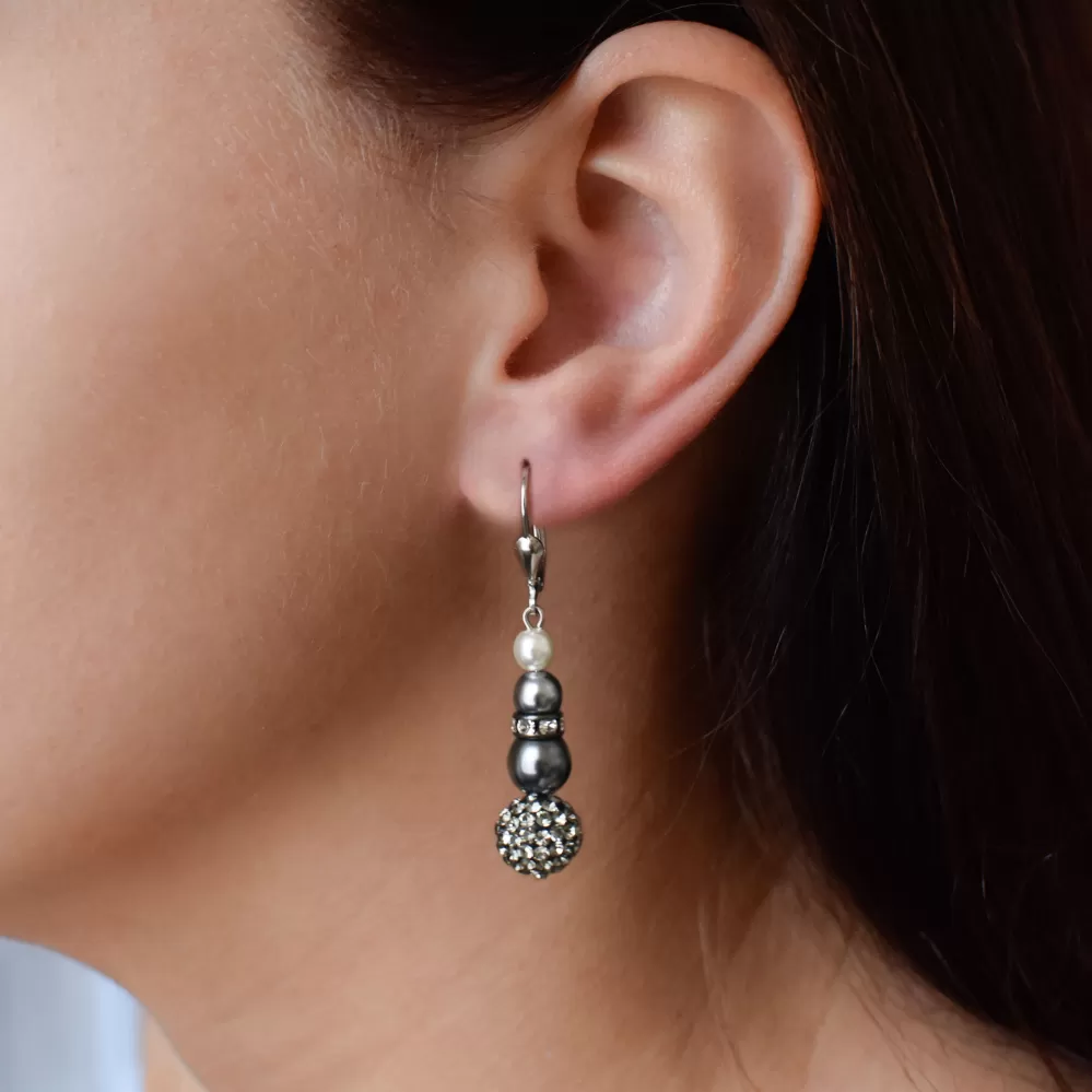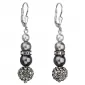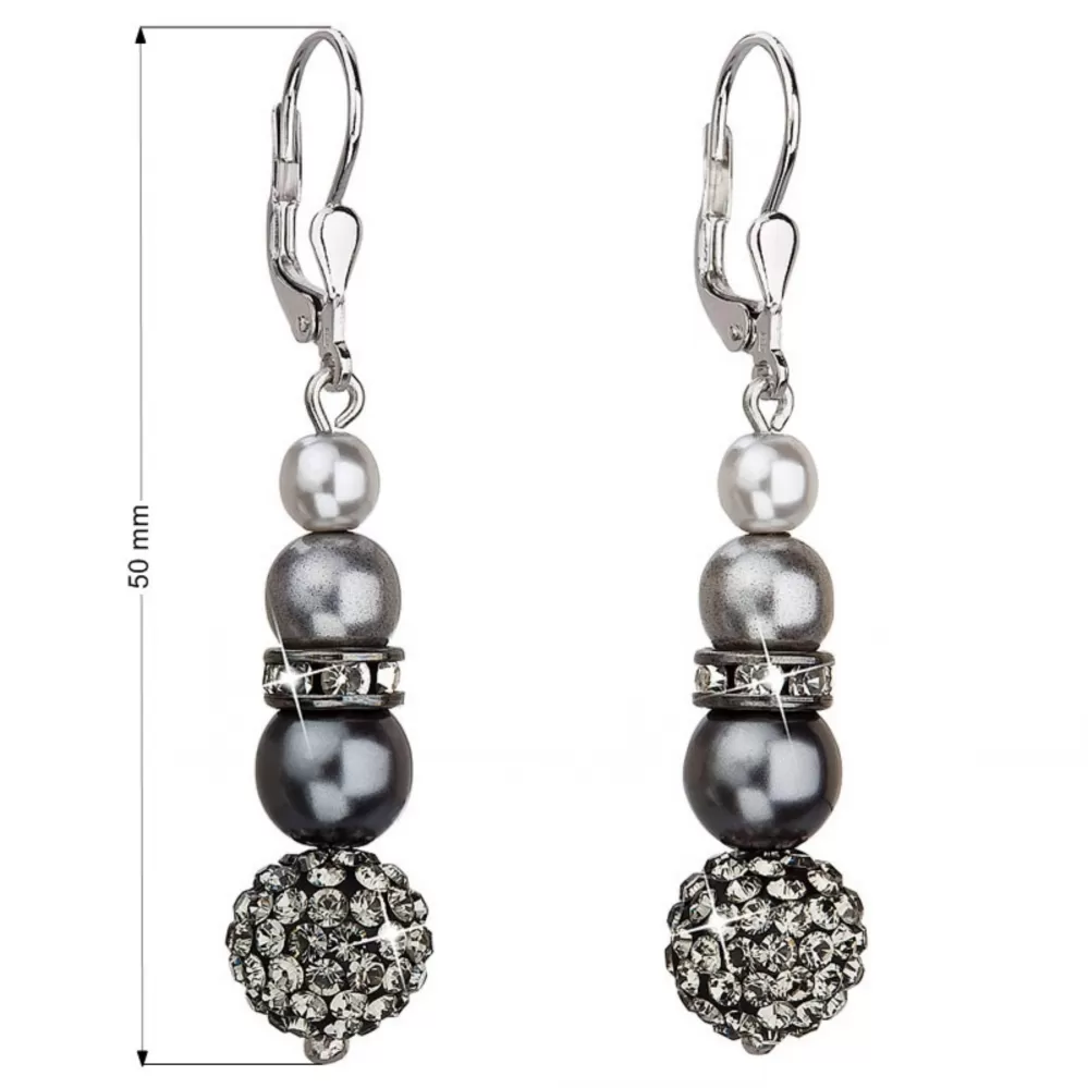 Strieborné náušnice visiace so syntetickými perlami a Preciosa kryštály šedé okrúhle 31149.3