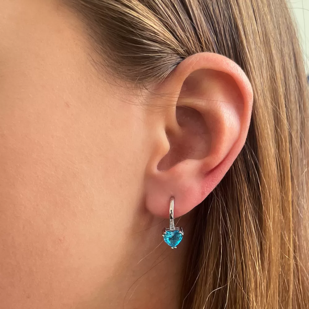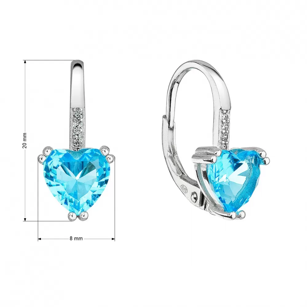 Parametre strieborných náušníc visiacich so zirkónmi modré srdiečko 11409.3 aqua
