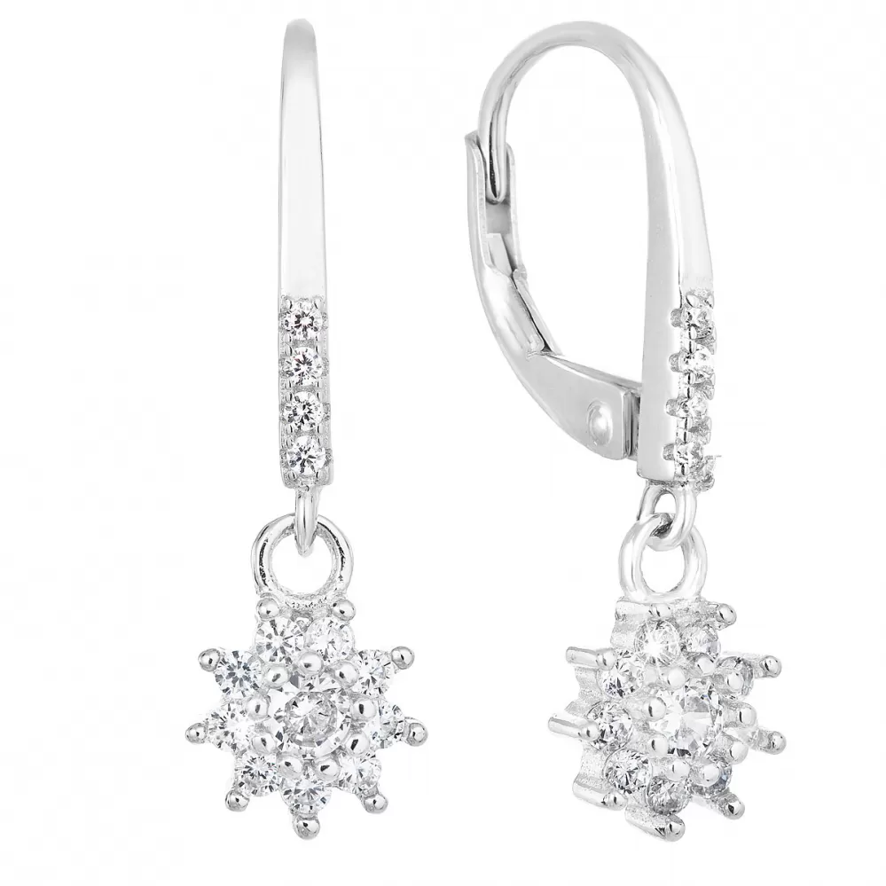 Strieborné náušnice visiace so zirkónom biela kvietka 11304.1
