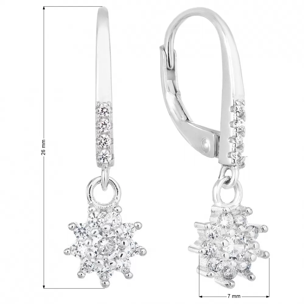 Parametre strieborných náušníc visiace so zirkónom biela kvietka 11304.1