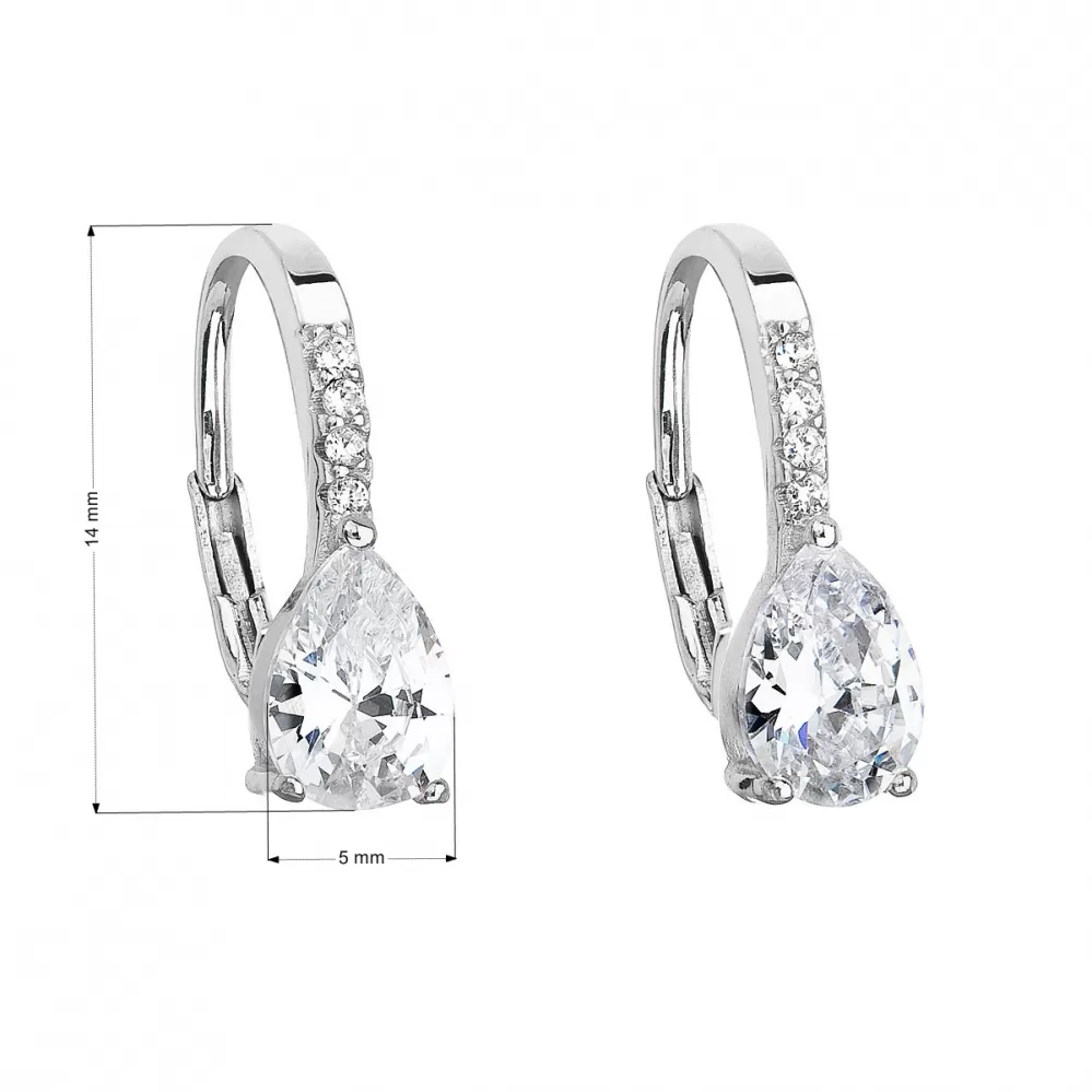 Parametre strieborných visiacich náušníc so zirkónom biela slza 11206.1