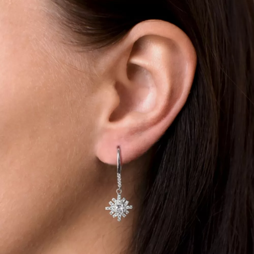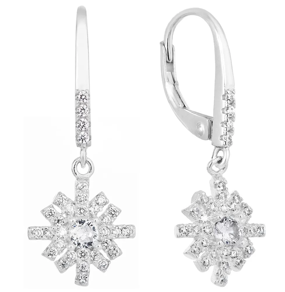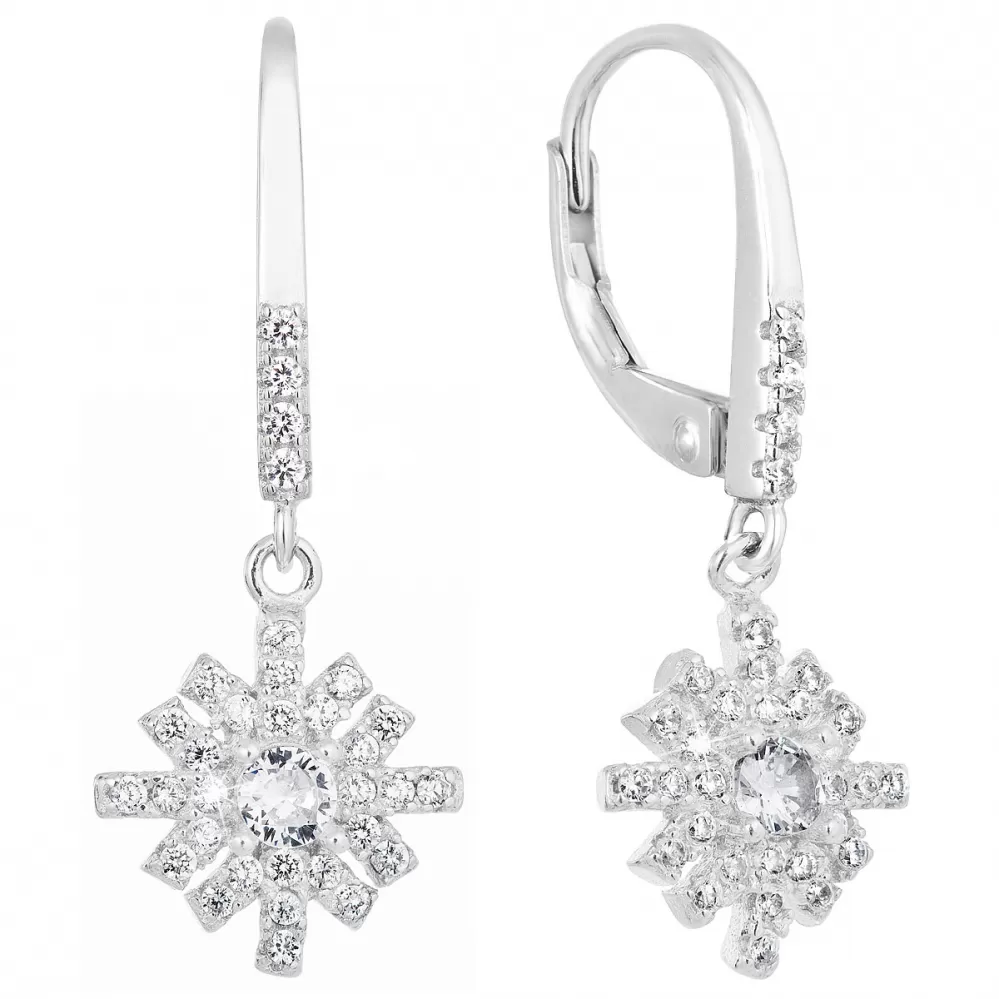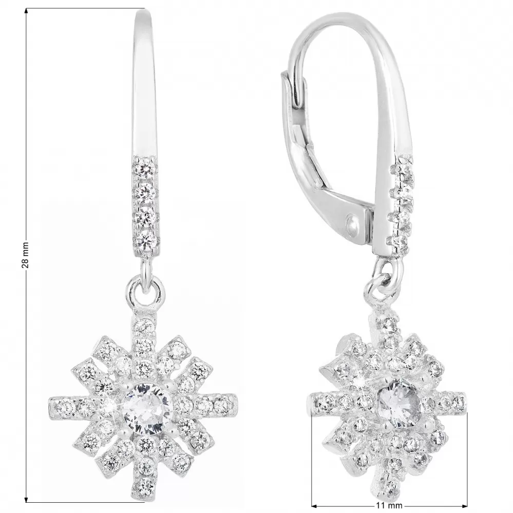 Strieborné náušnice visiace so zirkónom biela vločka 11299.1