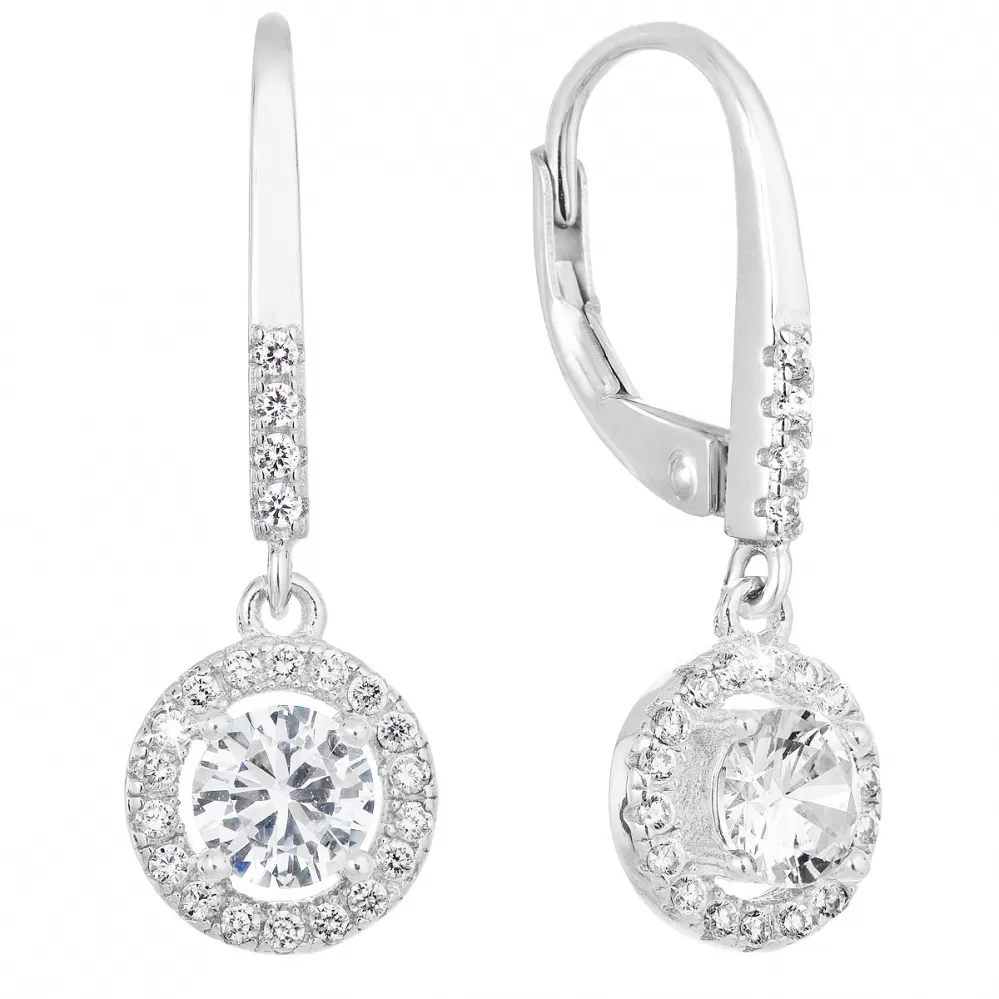 Strieborné náušnice visiace so zirkónom biele okrúhle 11300.1