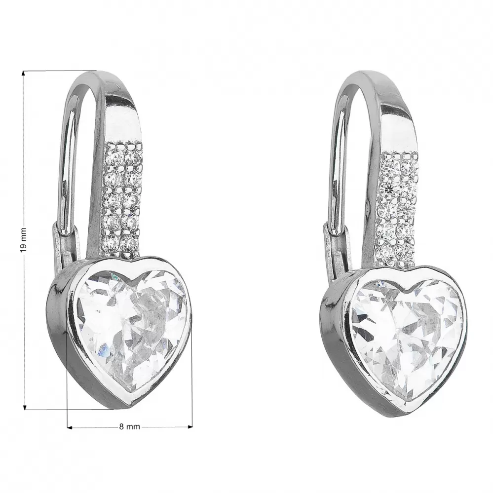 Parametre strieborných visiacich náušníc so zirkónom biele srdce 11169.1