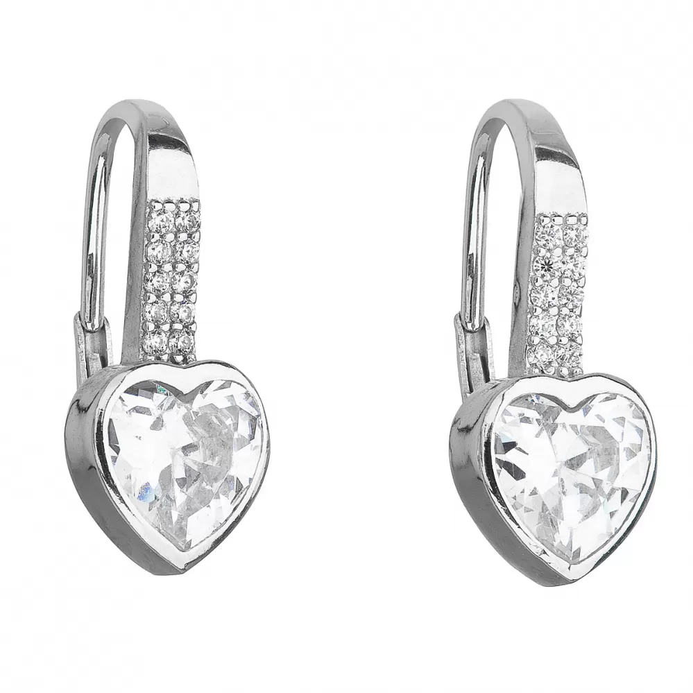 Strieborné náušnice visiace so zirkónom biele srdce 11169.1