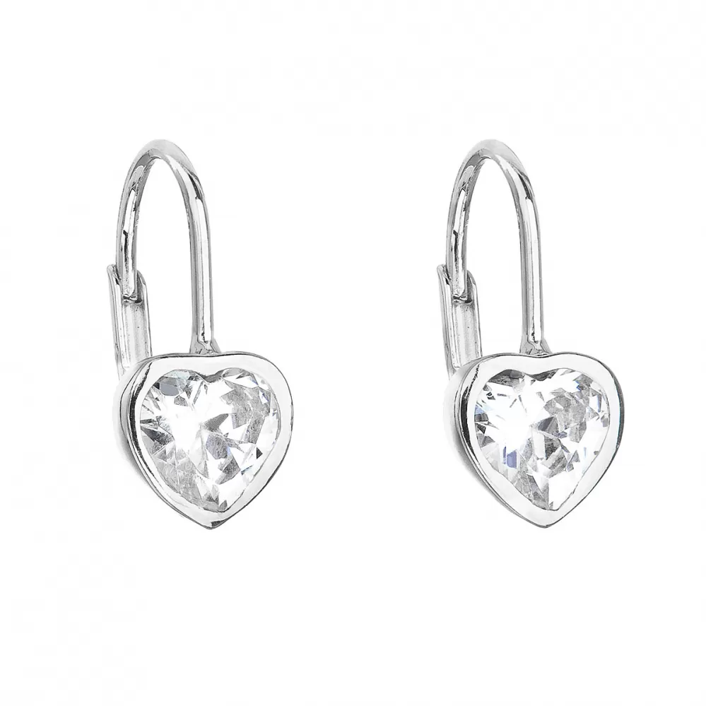 Strieborné náušnice visiace so zirkónom biele srdce 11185.1