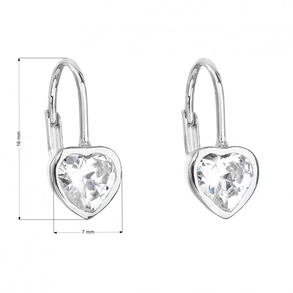 Parametre strieborných visiacich náušníc so zirkónom biele srdce 11185.1