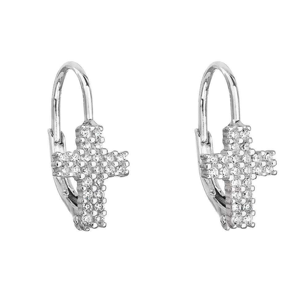 Strieborné náušnice visiace so zirkónom biely krížik 11182.1