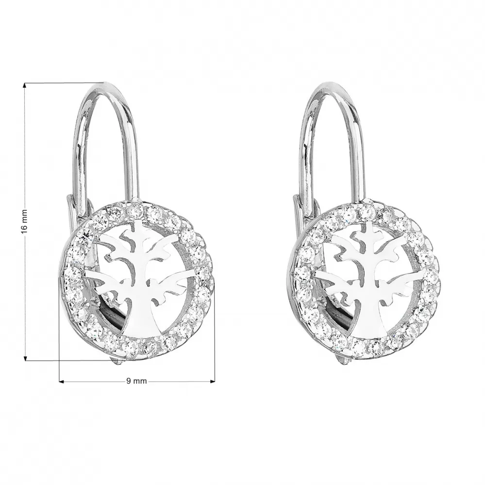 Parametre strieborných visiacich náušníc so zirkónom biely strom 11181.1