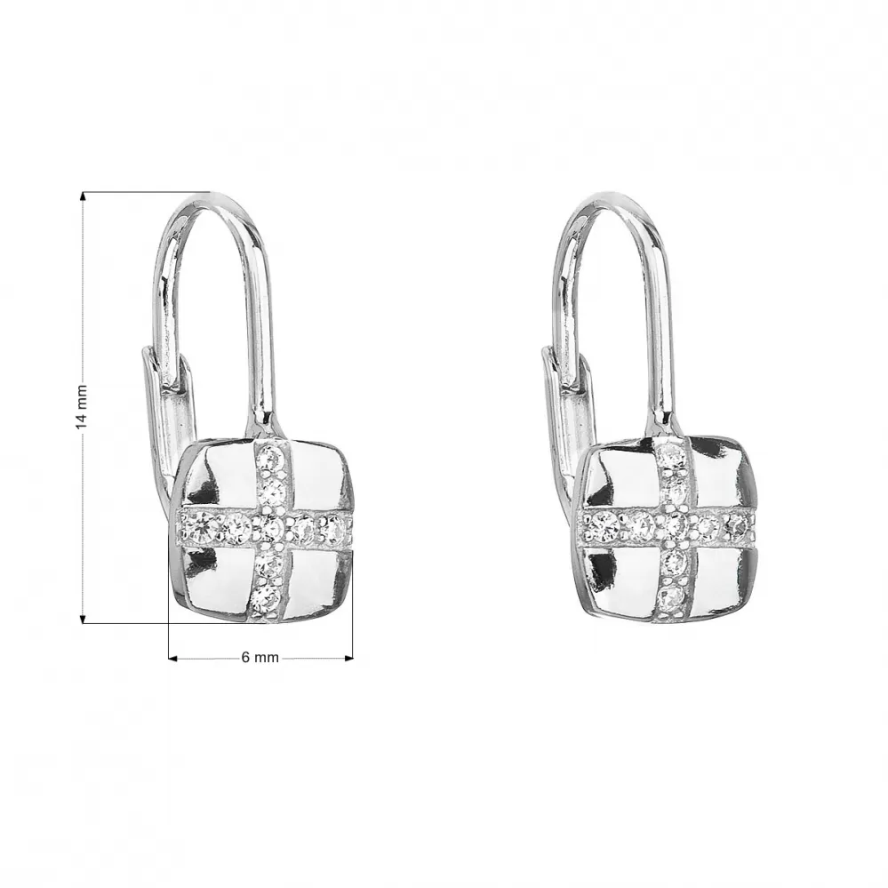 Parametre strieborných visiacich náušníc so zirkónom biely štvorec 11210.1