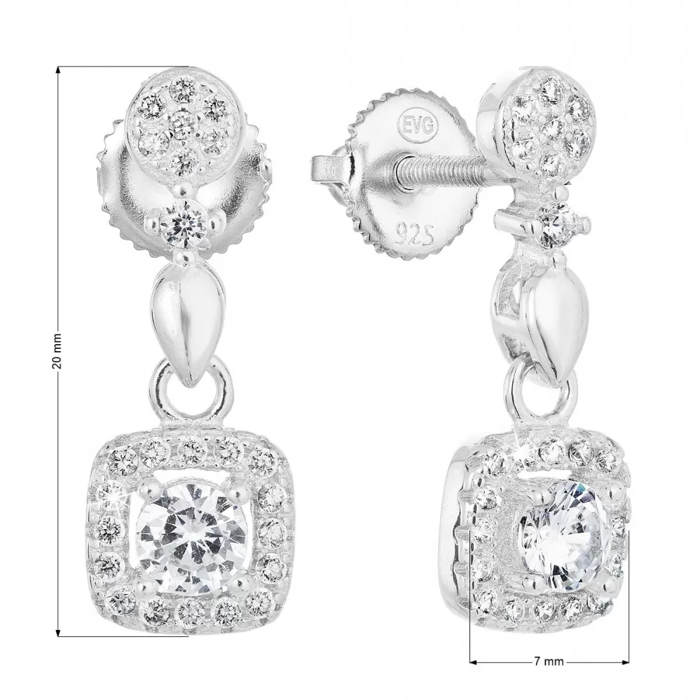 Parametre strieborných náušníc visiace so zirkónom v bielej farbe 11329.1