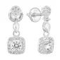 Visiace náušnice vyrábame zo striebra rýdzosti 925/1000, ktorého povrch je upravený ródiom. Ródium šperk ochraňuje proti sčernanie, zožltnutie alebo poškriabaniu. Náušnice sú ozdobené malinkými zirkónmi v bielej farbe a jedným dominantným zirkónom uprostred šperku.