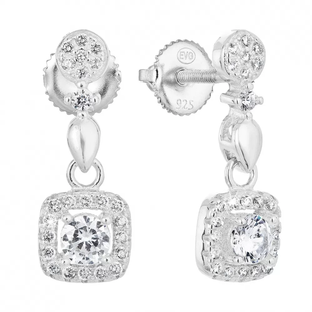 Strieborné náušnice visiace so zirkónom v bielej farbe 11329.1