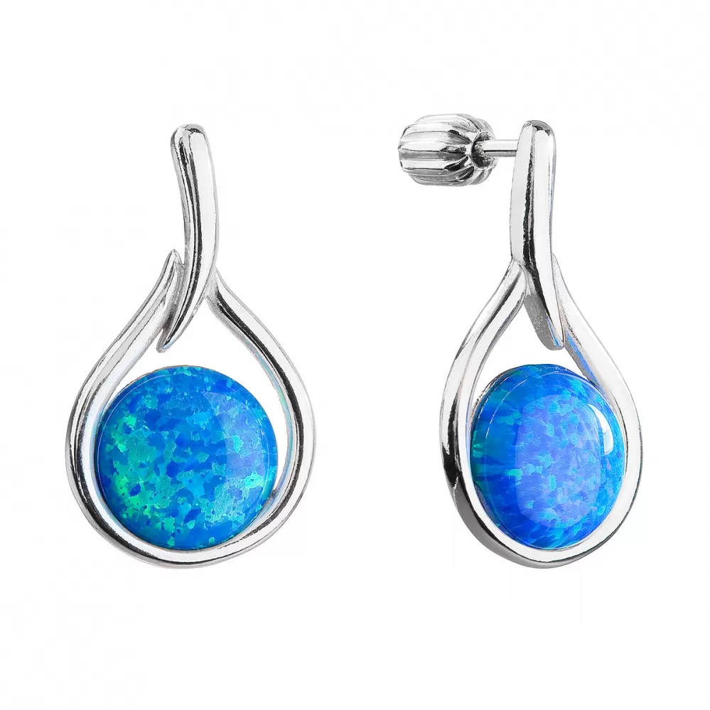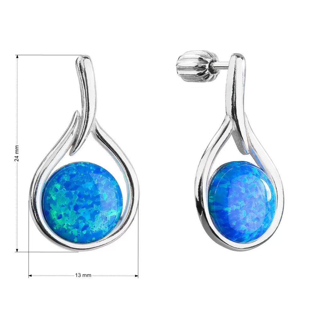 Parametre strieborných visiacich náušníc so syntetickým opálom 11336.1 modré