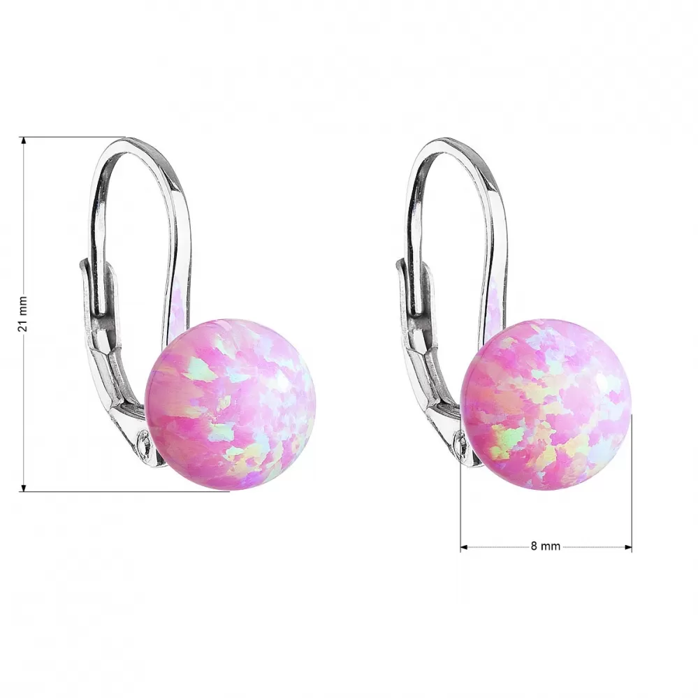 Strieborné visiace náušnice so syntetickým opálom ružové okrúhle 11245.3
