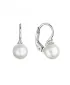 Náušnice 81PZ00023 sú vyrobené zo14-karátového bieleho zlata s rýdzosťou 585/1000 a zdobia ich okrúhle biele riečne perly tej najvyššej kvality AAA. Šírka perličky je 6 ,5-7 mm. Nad perličkou je malý zirkónik.