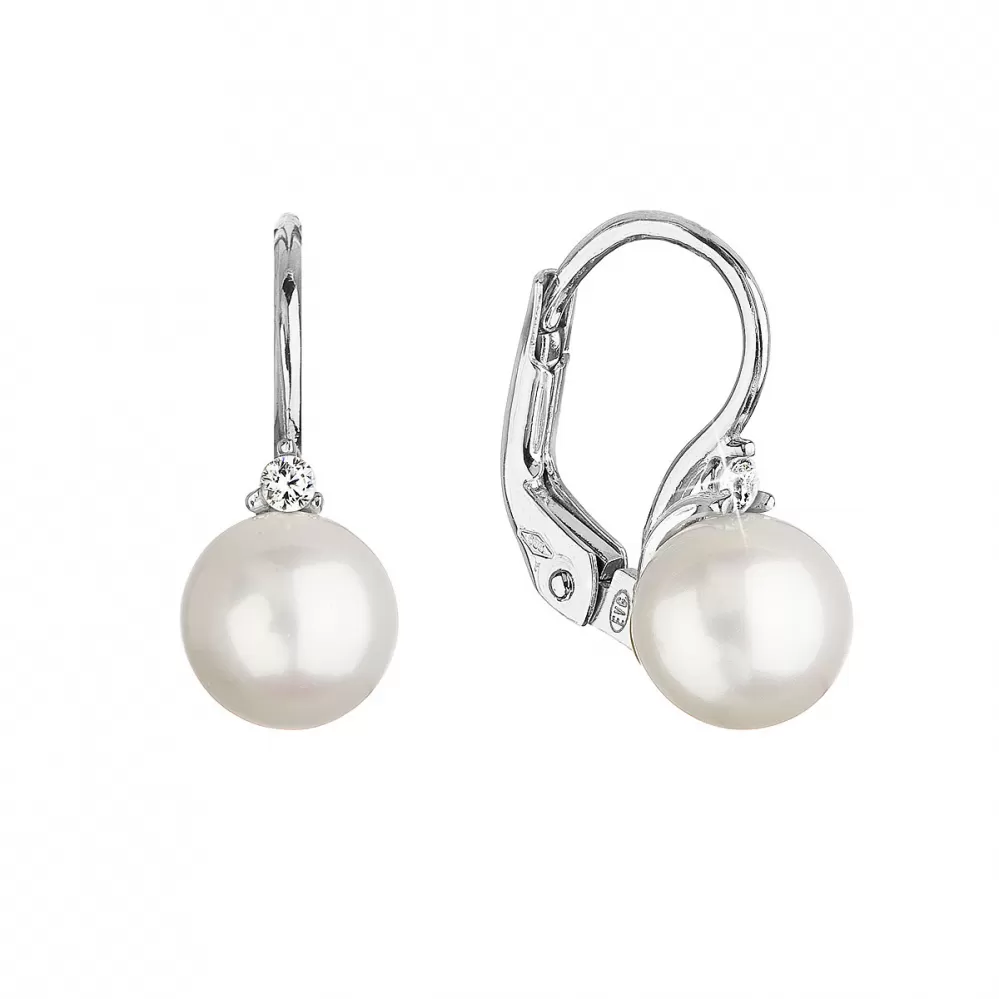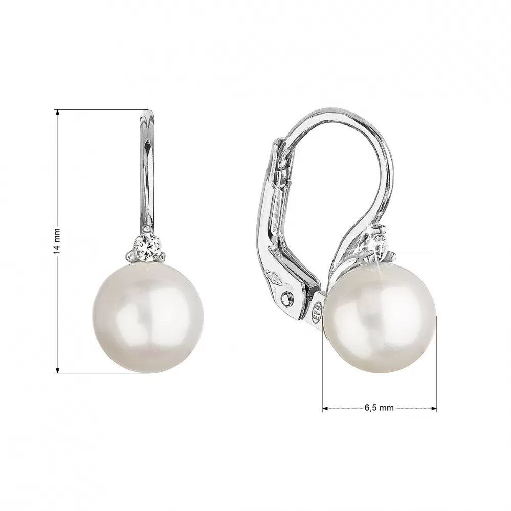 Parametre zlatých 14-karátových náušníc biele zlato s riečnou perlou a zirkónom 81PZ00023