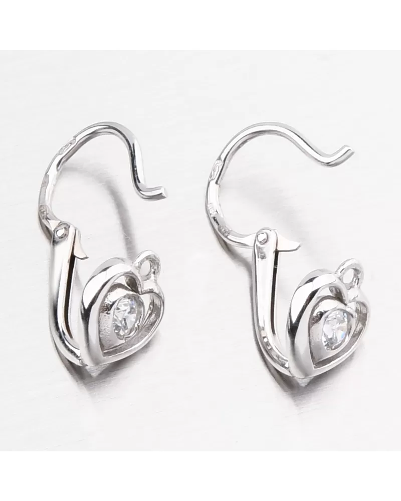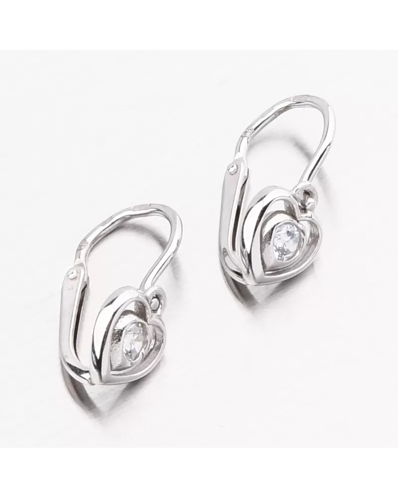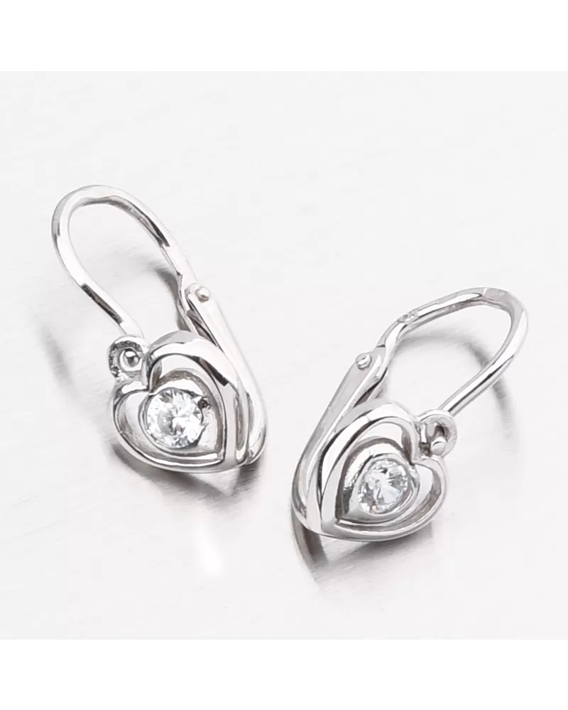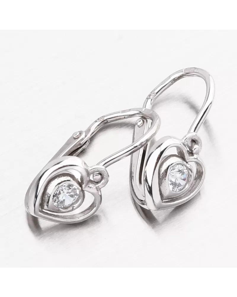 Jemné detské náušnice v tvare srdca zdobeného žiarivým bielym zirkónom sú ideálnymi šperkami pre malé princezny. Elegantný dizajn vyzerá zároveň jemne a hravé, takže je vhodný na každodenné opotrebenie a slávnostné príležitosti. Vďaka ľahkému dizajnu sú náušnice pohodlné a bezpečné pre citlivé detské uši. Biely zirkón v brilantnom strihu dáva šperku magický lesk a stáva sa krásnym symbolom radosti a lásky. Brilantný strih poskytuje zirkónom dokonalý odraz svetla a zirkóny sa krásne trblietajú. Tento klenot je ideálnym darčekom pre narodenie dieťaťa, narodeniny, krst alebo len pre potešenie.