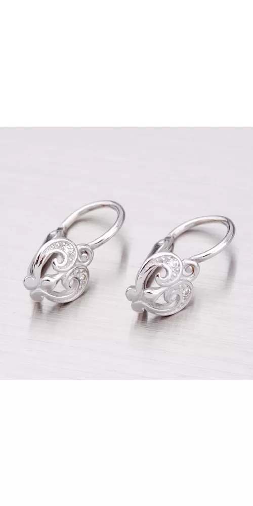 Srdiečka - detské náušnice sú vyrobené z bieleho štrnáctikarátového zlata 585/1000 v lesklej povrchovej úprave s jedným zirkónom bielej farby.
