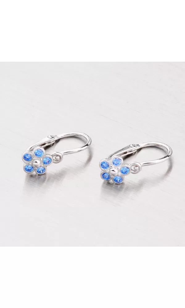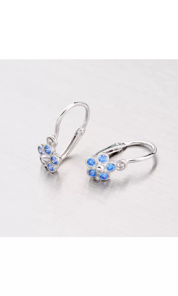 Detské náušničky v tvare kvietky s modrými zirkónmi sú neprehliadnuteľné a vďaka nim bude Vaša najmilšia žiariť už od útleho veku.