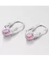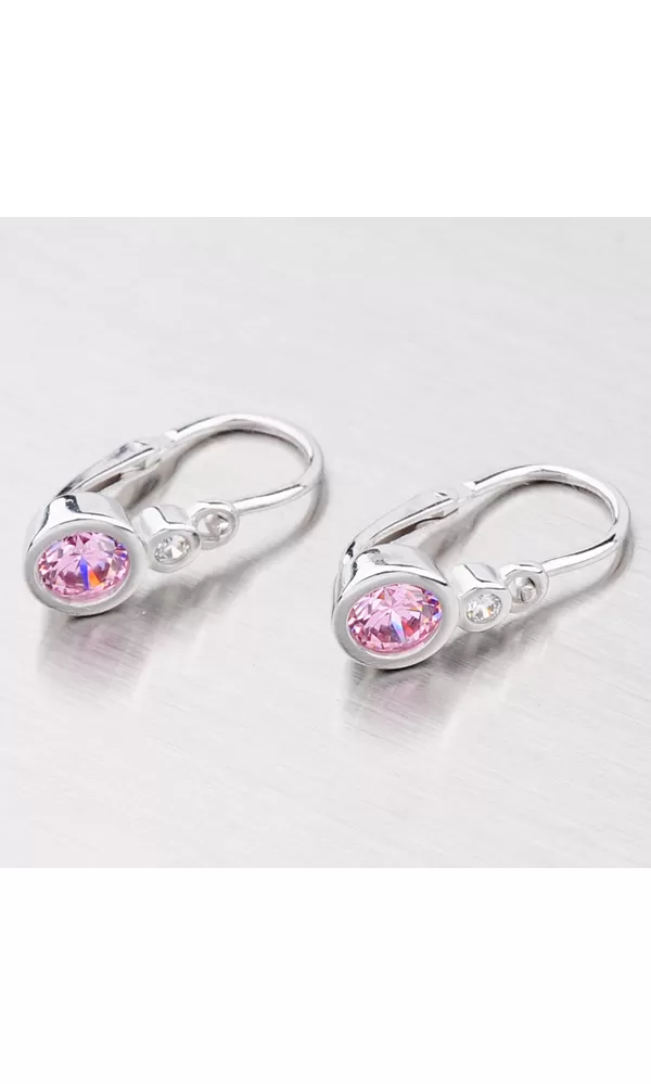 Detské náušničky sú zdobené dvoma zirkónmi. Väčší zirkón je ružový a menší biely.