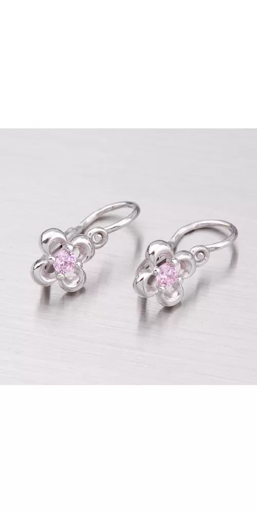 Detské náušnice v tvare kvietky sú vyrobené z bieleho štrnásťkarátového zlata 585/1000 v lesklej povrchovej úprave s jedným zirkónom ružovej farby. Náušničky sa zapínajú na brizúry.