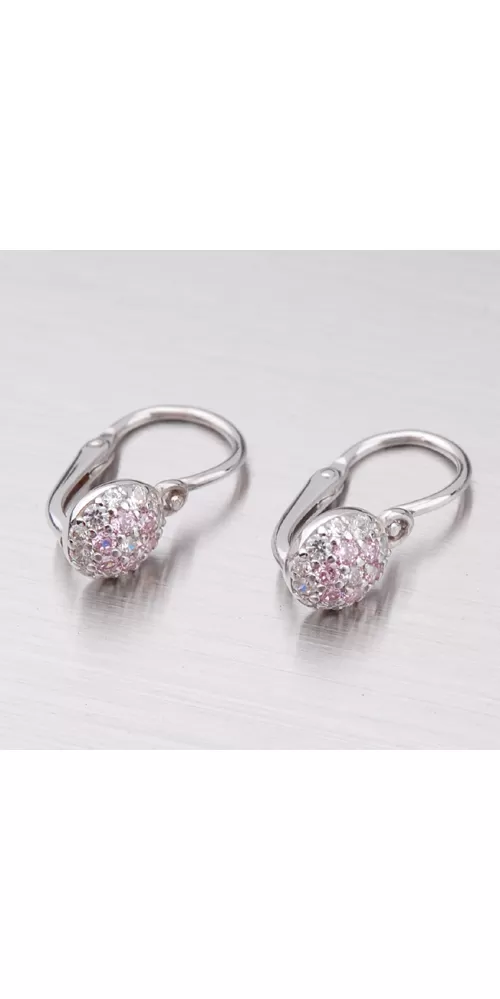 Detské náušnice sú vyrobené z bieleho štrnástikarátového zlata 585/1000 v lesklej povrchovej úprave s drobnými bielymi a ružovými zirkónmi so zapínaním na brizúry.