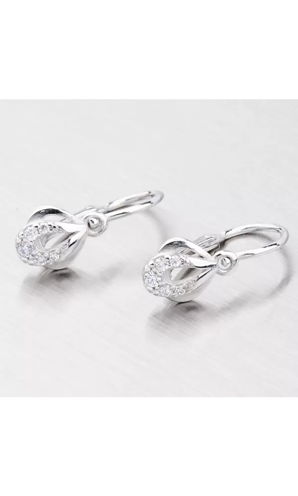 Detské náušničky sú vyrobené z bieleho štrnásťkarátového zlata 585/1000 v lesklej povrchovej úprave zdobenej zirkónmi.